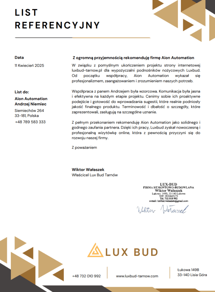 Strona luxbud-tarnow.pl łączy techniczną precyzję z użytecznością biznesową. Dzięki zastosowaniu wtyczki ACF oraz uporządkowanej architekturze informacji, użytkownik otrzymuje natychmiastowy dostęp do kluczowych danych (cena, dostępność, parametry), co skraca drogę do decyzji o wynajmie. Zintegrowane narzędzia analityczne i techniczne zaplecze SEO sprawiają, że witryna jest nie tylko wizytówką, ale skutecznym narzędziem sprzedaży usług.